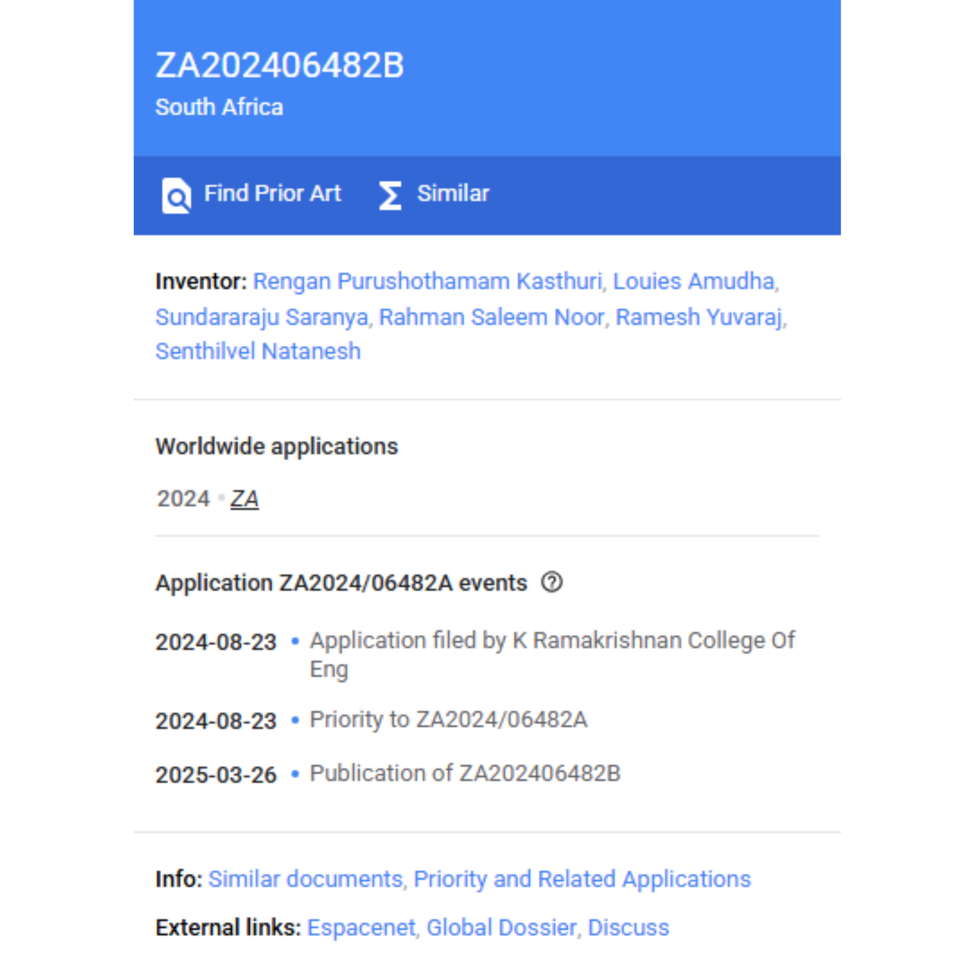 Inventors: Mrs. L. Amudha, Mr. P. Kasthuri Rengan,